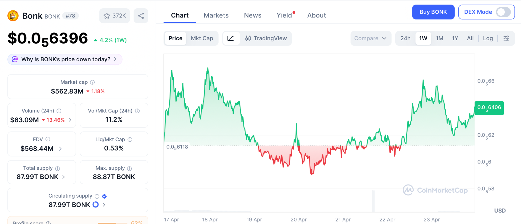 Is Bonk (BONK) a good buy at $0.0000063 after a 6% rally in April 2026?