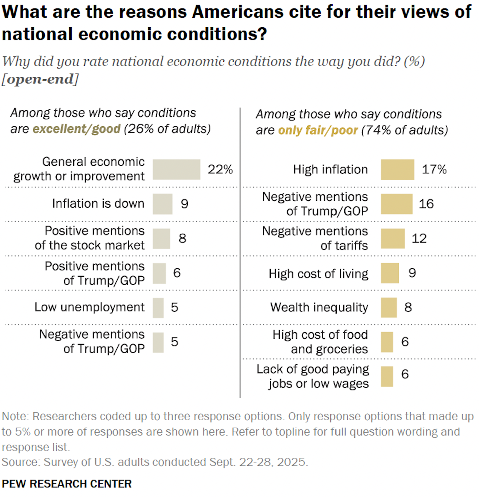 A new Pew Research Center survey paints a troubling picture of the American economy, showing that 76% of Americans view current economic conditions as “poor” or “fair,” up from 72% earlier this year. Despite steady markets and slowing inflation, public confidence continues to erode, with households still struggling under persistent cost pressures.