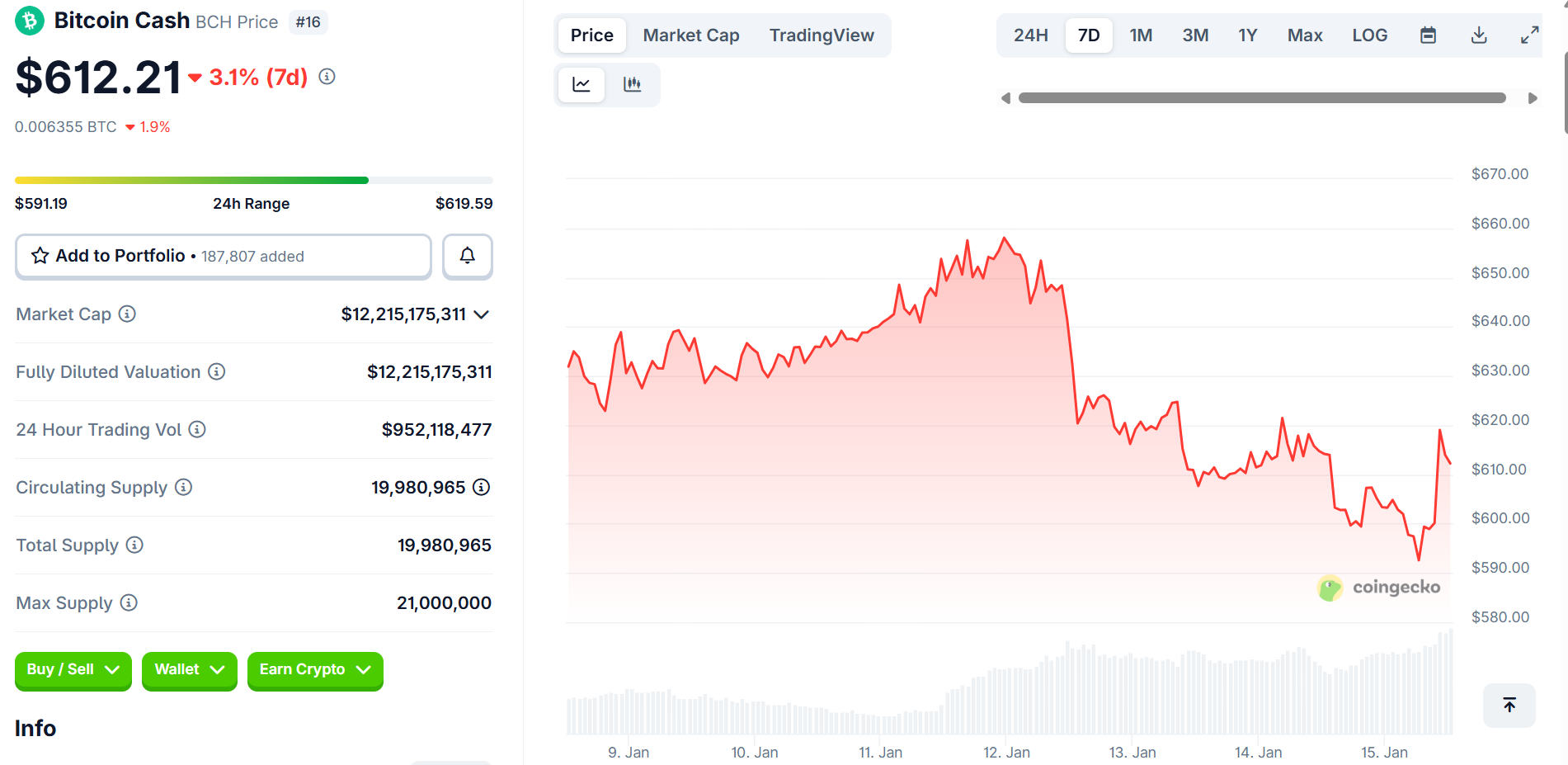 Bitcoin Cash is trading around $612 to $614, with 24-hour volume near $995 million and a market cap close to $12.2 billion, keeping it in the top 12 by size. BCH has been moving in a choppy range lately, with recent sessions showing swings inside the $597 to $621 zone. That activity is exactly why the Bitcoin Cash (BCH) price prediction remains tied to whether buyers can stay in control near the key decision level around $611.