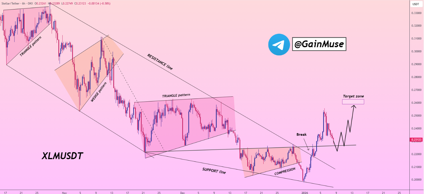 Market observers note that XLM recently resolved a compression pattern to the upside, briefly reclaiming local structure. A technical breakdown shared in this Stellar analysis post points to buyers stepping in after consolidation, though it also warns that a drop below the breakout area would weaken the setup.
