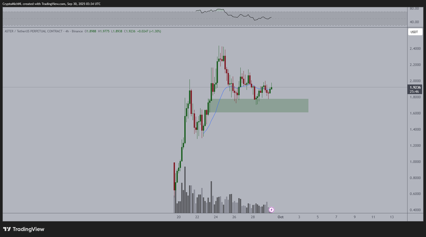 Aster’s price momentum in recent weeks has been strong. After a substantial rally (at times going beyond $2.40 in bullish runs) it has been subdued and “held the line” near $1.80 to $2.10 level. Analysts point to healthy accumulation pressures: smart money inflows, relative strength metrics, and volume spikes during dips.