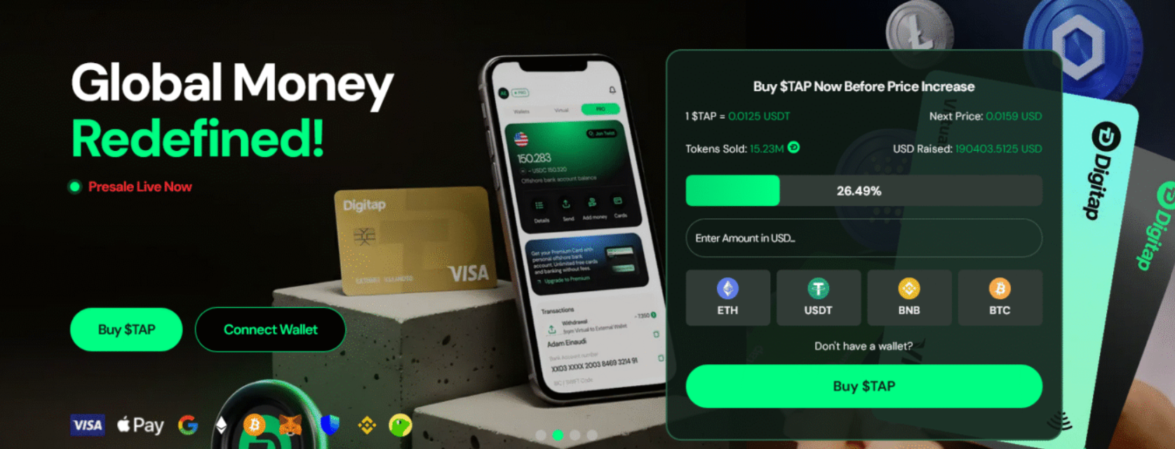 Digitap isn’t just another presale hype — it’s shaping up to be the most complete crypto project heading into 2025. With its live app, Visa-backed card, near-zero transfer fees, and privacy-first banking model, it’s tackling real-world problems that even the biggest tokens haven’t solved.