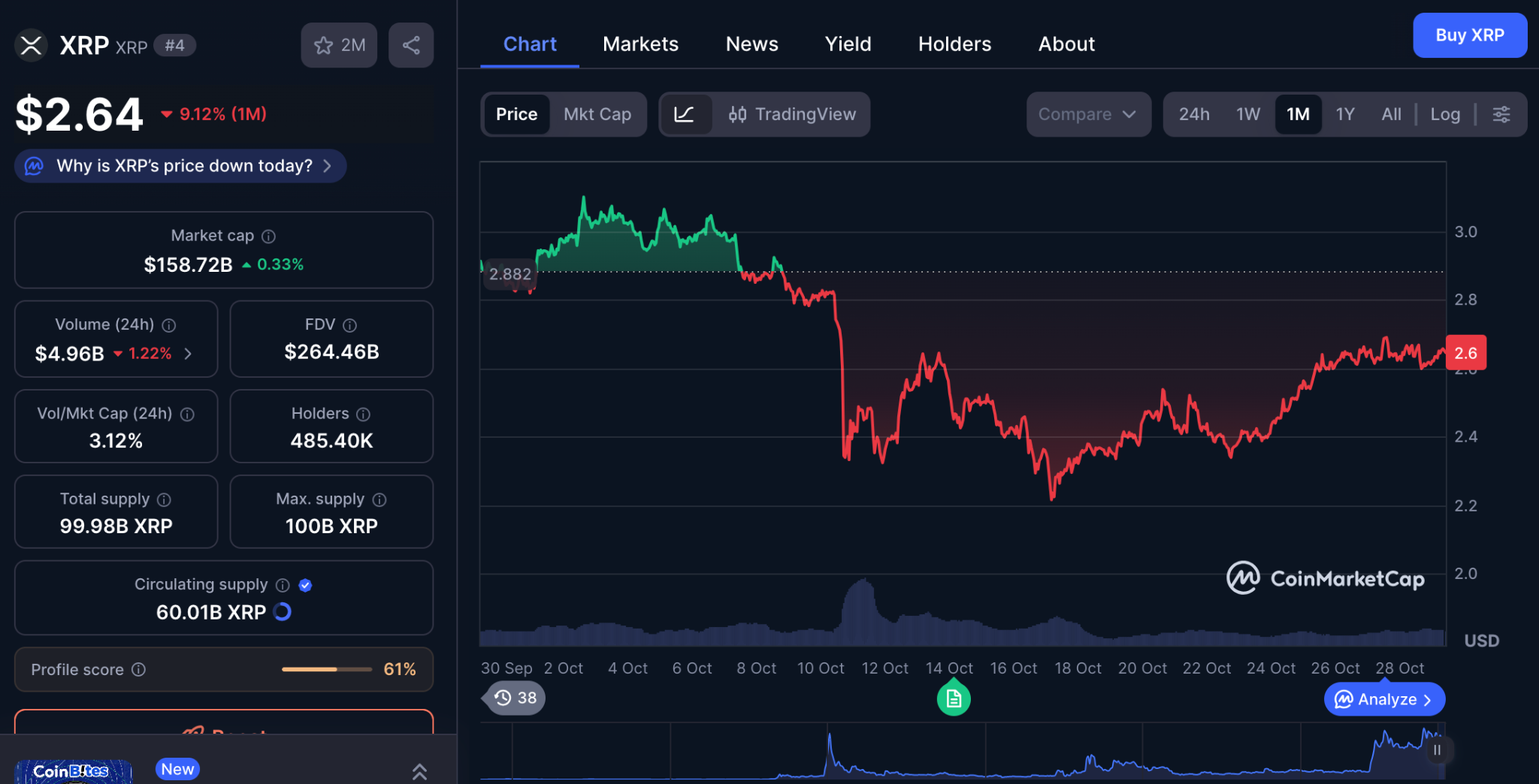 The market’s latest uptick has sparked optimism, but the gains in major altcoins have been restrained. Solana trades around $200, up 8% weekly, but down 6% monthly. BNB hovers above $1,100, up less than 3% weekly. XRP remains near $2.65 following its earlier decline, up 8% weekly but down 9% monthly.