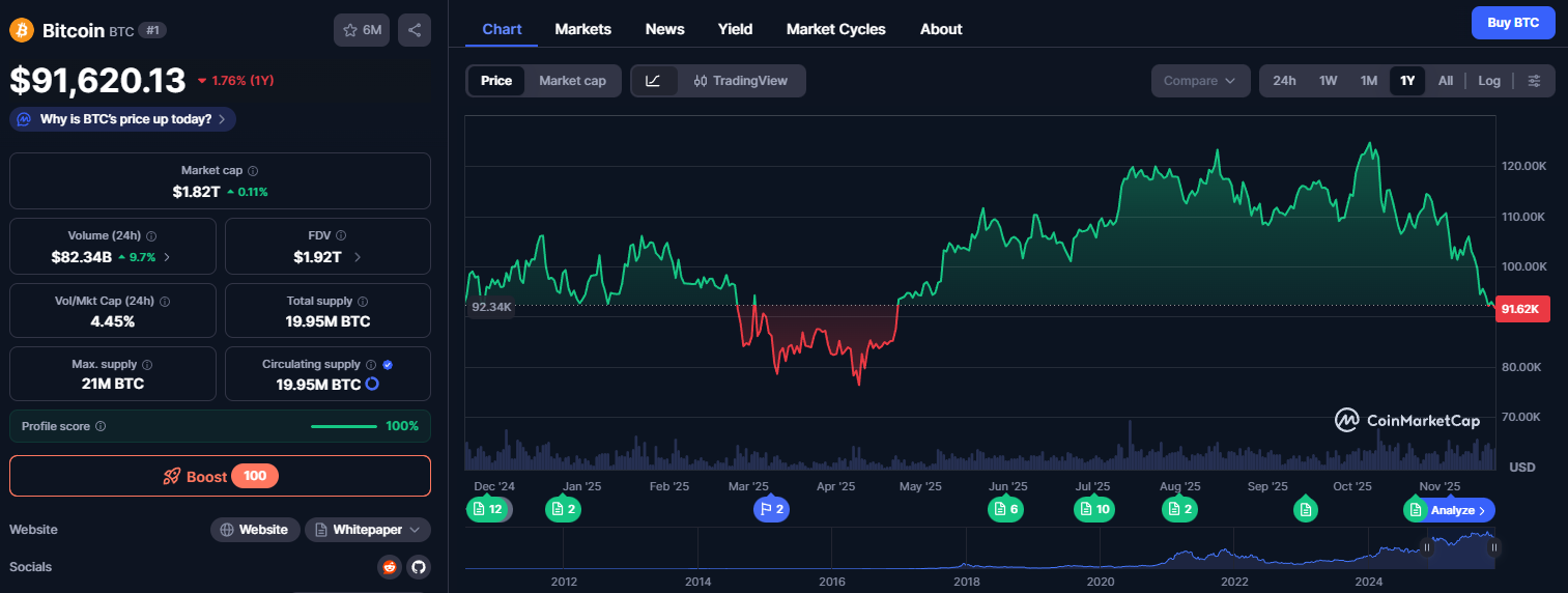 By late November, BTC had already dropped over 27% from its all-time high and was trading around $91,450. This has disappointed BTC investors, and they are worried that the overall crypto market will continue to drop.