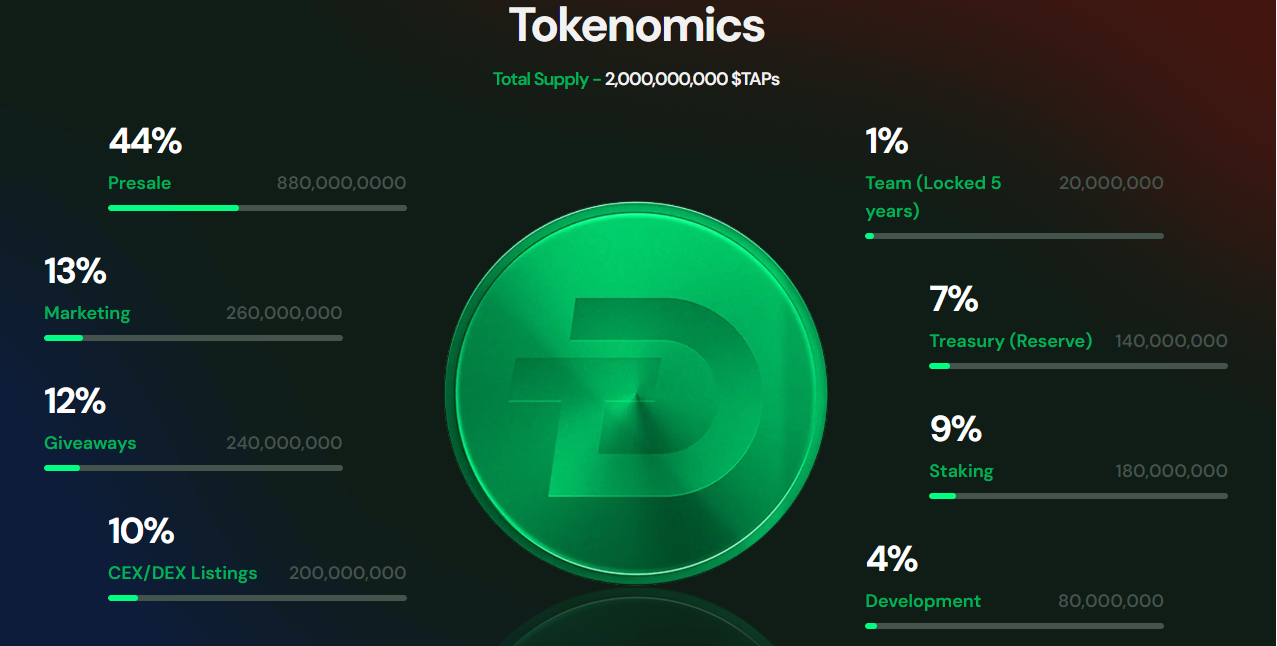 Digitap has allocated its tokens to support ecosystem growth sustainably. Here is the breakdown of its token allocation: