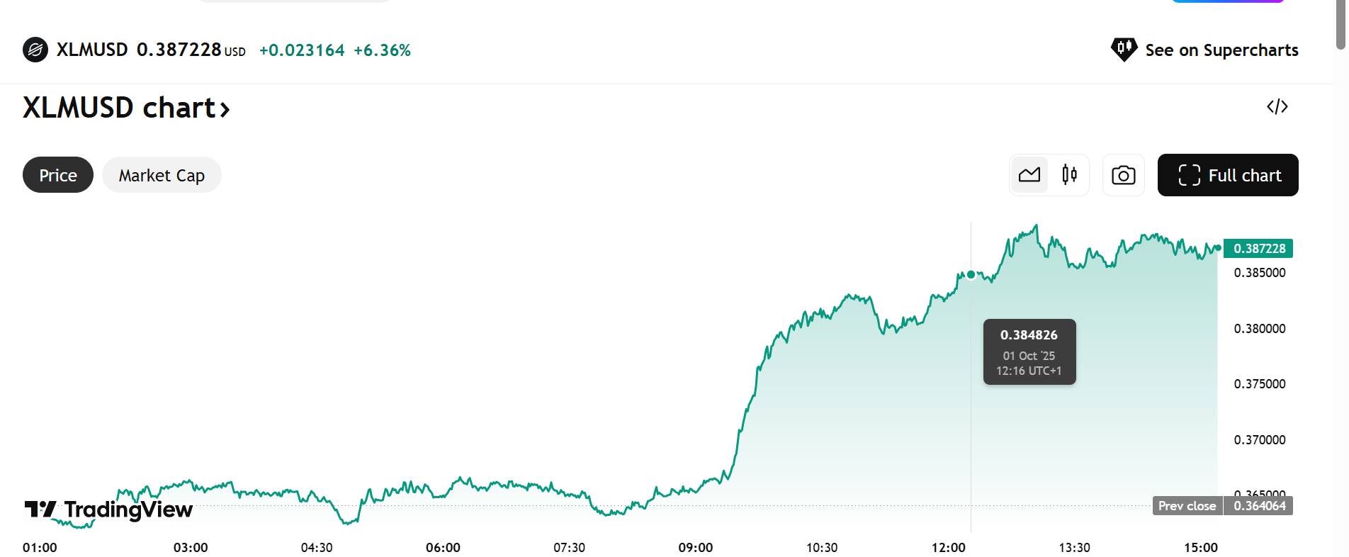 XLM trades near $0.3828 with resistance around $0.38–$0.38. Analysts agree this is the “line in the sand.” A clean breakout above could open the door to $0.40, $0.421, $0.443, and $0.471, with the bigger target set at $0.50–$0.52.