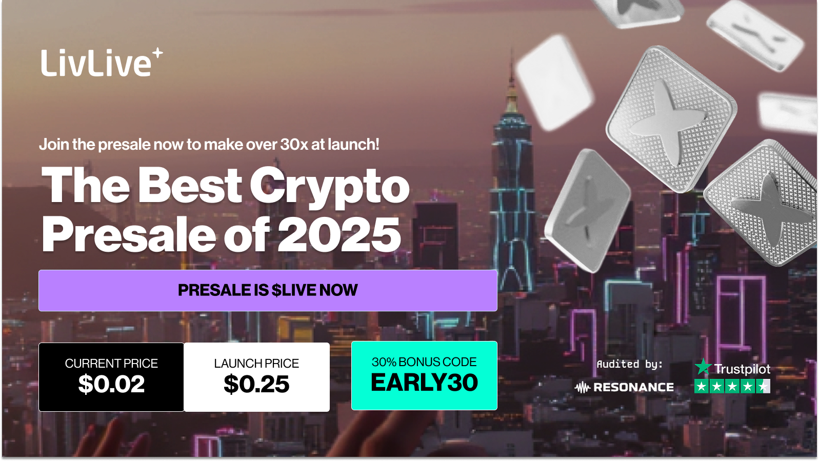 Limited-time offer: 30% extra $LIVE when you use code EARLY30