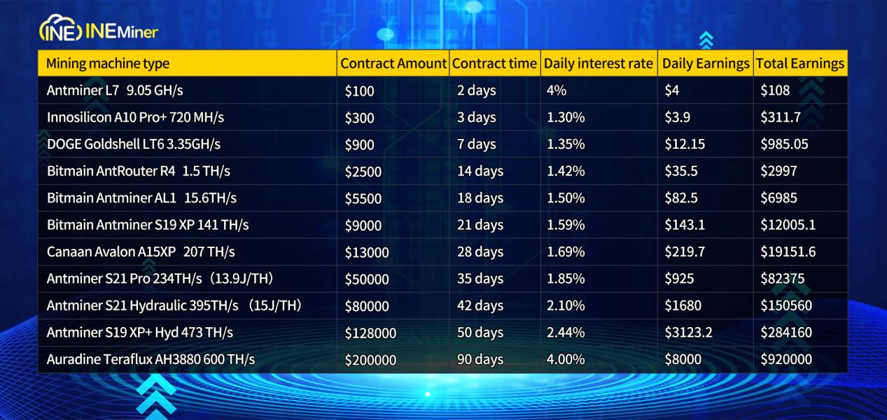 - Multiple contracts, free choice: INEMiner offers a variety of contracts for users to choose from. Sign a contract and start mining.