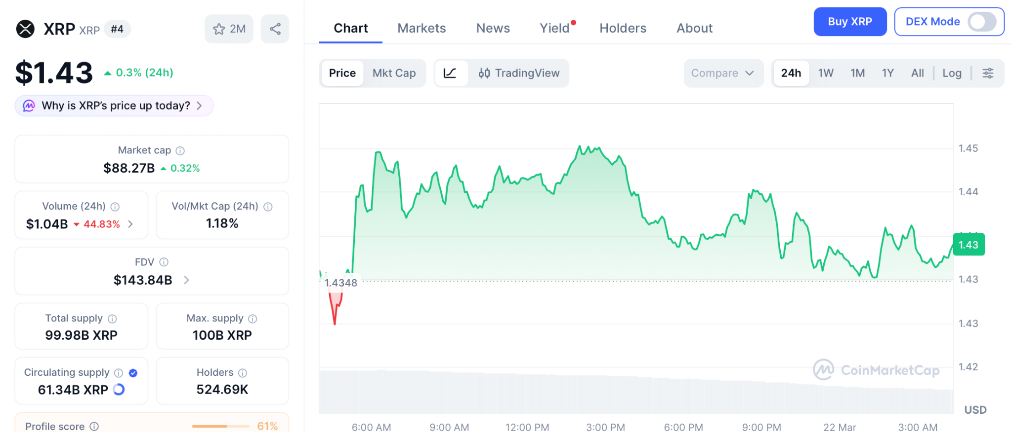 XRP is trading at $1.43, down 60% from its July 2025 all time high of $3.65 according to CoinMarketCap. Standard Chartered targets $2.80 for 2026. Broader forecasts range from $5 to $10 if the CLARITY Act passes before April.
