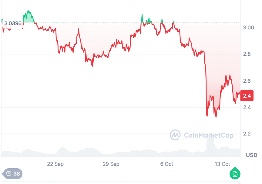 On October 14, XRP traded well below its key $3 target, settling in the $2.5 area, according to CoinMarketCap.