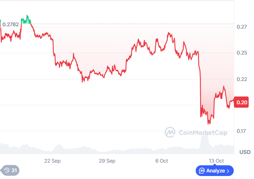 According to CoinMarketCap, Dogecoin traded in the $0.20 area on October 14.