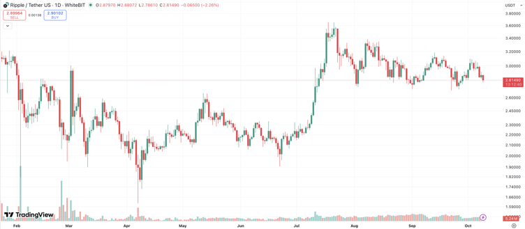 XRP is squeezing between two levels of $2.7 to $3.25 in an upward moving wedge. A decisive breakout past $3.25 could blast toward $4.50 or beyond. On-chain, exchange reserves are collapsing, some say over 90% off Coinbase, a classic accumulation signal. Analysts have tagged this as the early innings of a parabolic run.