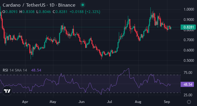 ADA trades between $0.77 and $0.89. The coin slipped -3.61% in the last 7 days, but it still shows a healthy +14.07% jump over 30 days and a modest +2.73% gain across 6 months. This mixed tape points to a market that is pausing after a strong monthly climb yet far from weak.